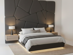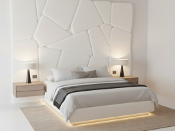 El modelo STONE redefine el concepto de dormitorio con su icónico cabecero de inspiración pétrea. Cada panel ha sido diseñado para crear un juego de volúmenes y sombras que aporta profundidad y carácter al espacio, fusionando el arte de la tapicería con la ingeniería del mueble más avanzada.